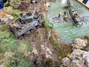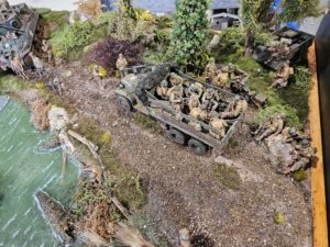 Un panzer IV se prépare pour une traversée bien risquée, accompagné de quelques éléments disparates de l’armée allemande.