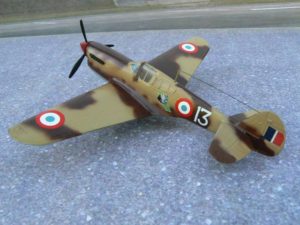 Les FAFL recoivent  25 exemplaires du P-40F, entre le 15 et le 21 novembre1942, au sein du groupe de chasse GC 2/5 Lafayette nouvellement réarmé et basé à Casablanca au Maroc Ils seront opérationnels en unité le 25 novembre. Ils seront suivis par des P-40L, livrés à partir du 9 avril 1943. Les P-40L étaient tous des « queues longues » . Ce  » 13  » blanc portait un camouflage hors standard, alors qu’ il était affecté à l’ escadrille C1 de l’ Ecole de Chasse de Meknès au Maroc.
