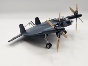 Appareil du Lt Alexander VRACIU de la VF 6, en 1944, basée sur le PA USS Intrepid, dans un schéma classique White – Intermediaet Blue – Navy Blue, agrémenté de 9 victoires et du « Felix le chat »